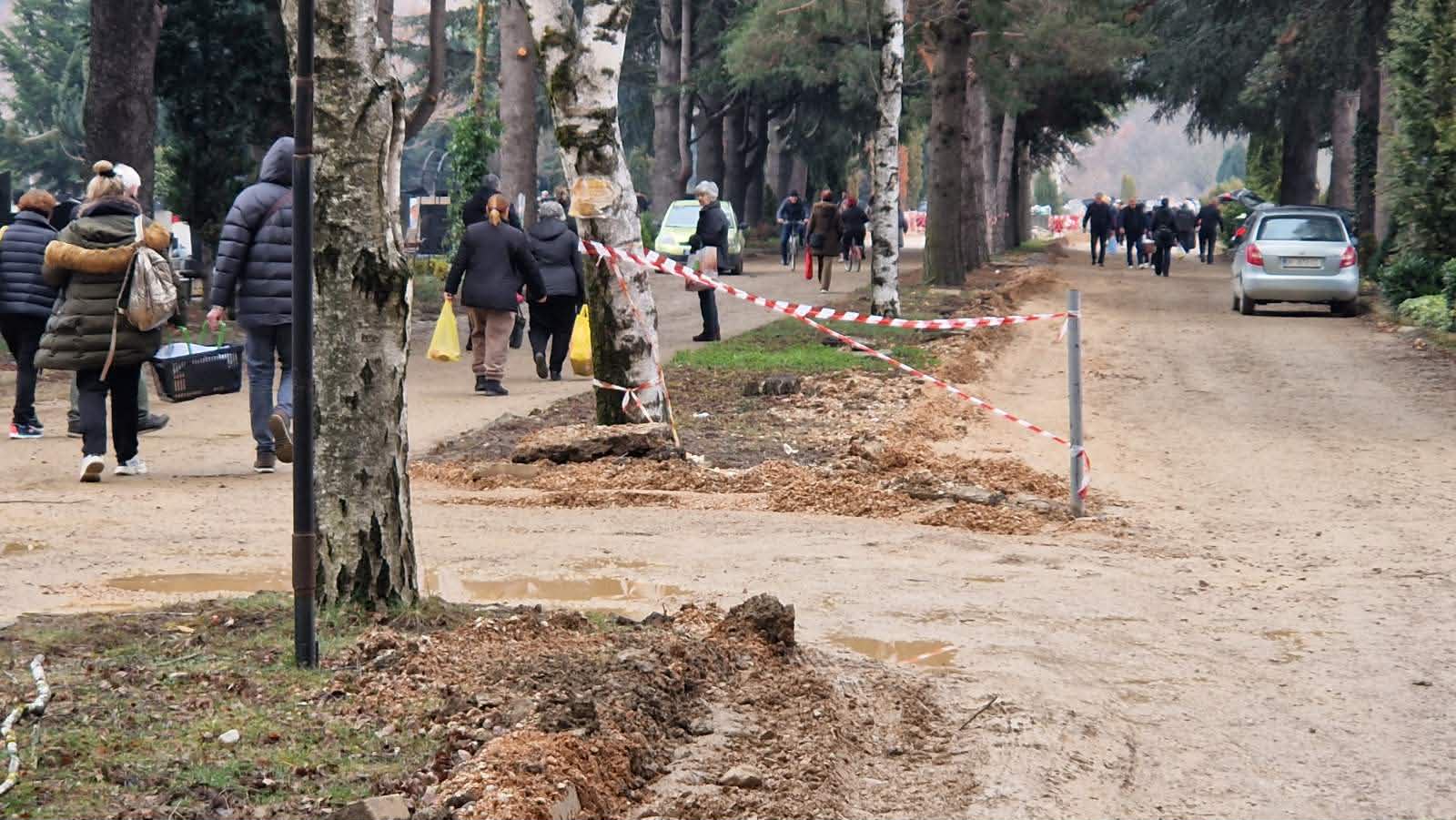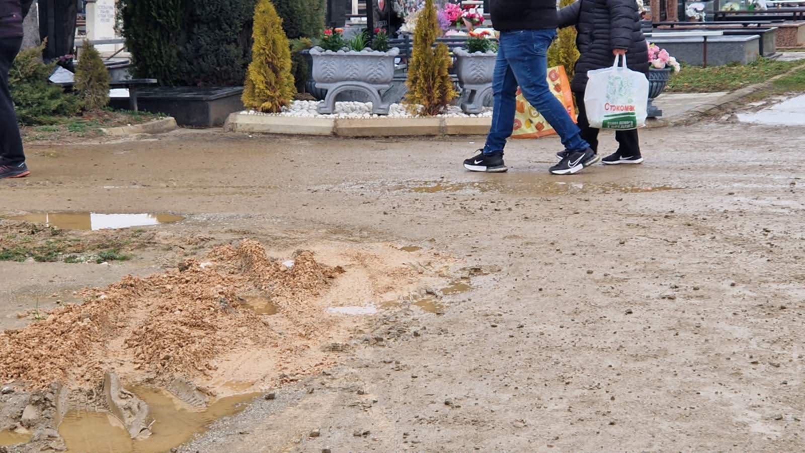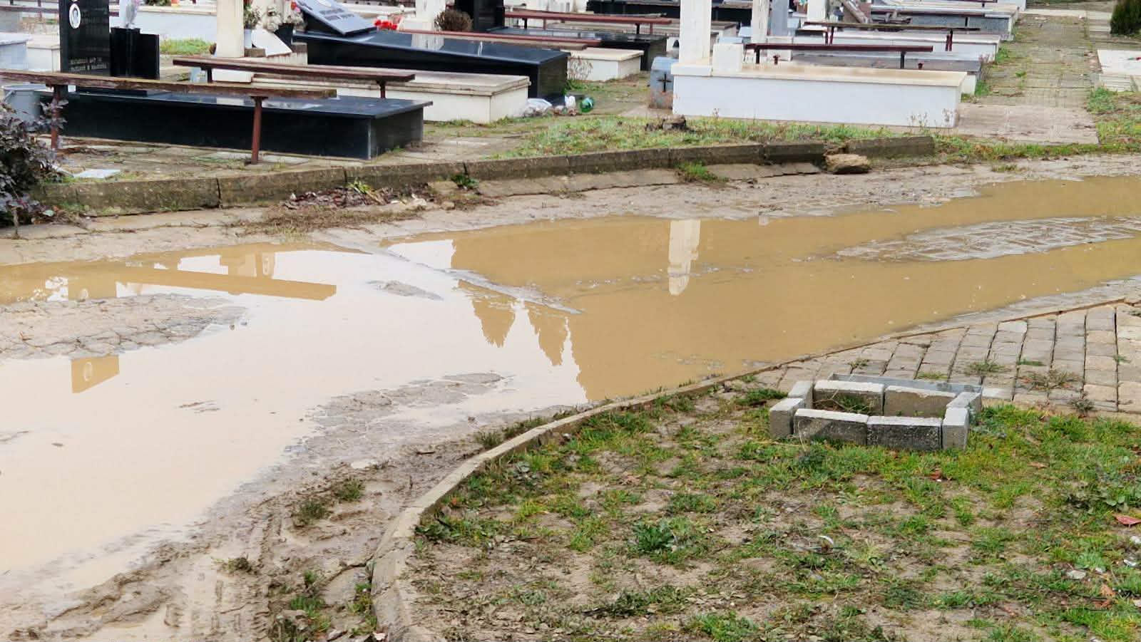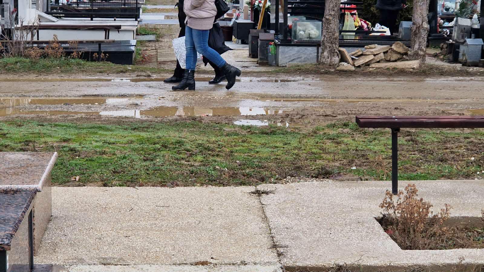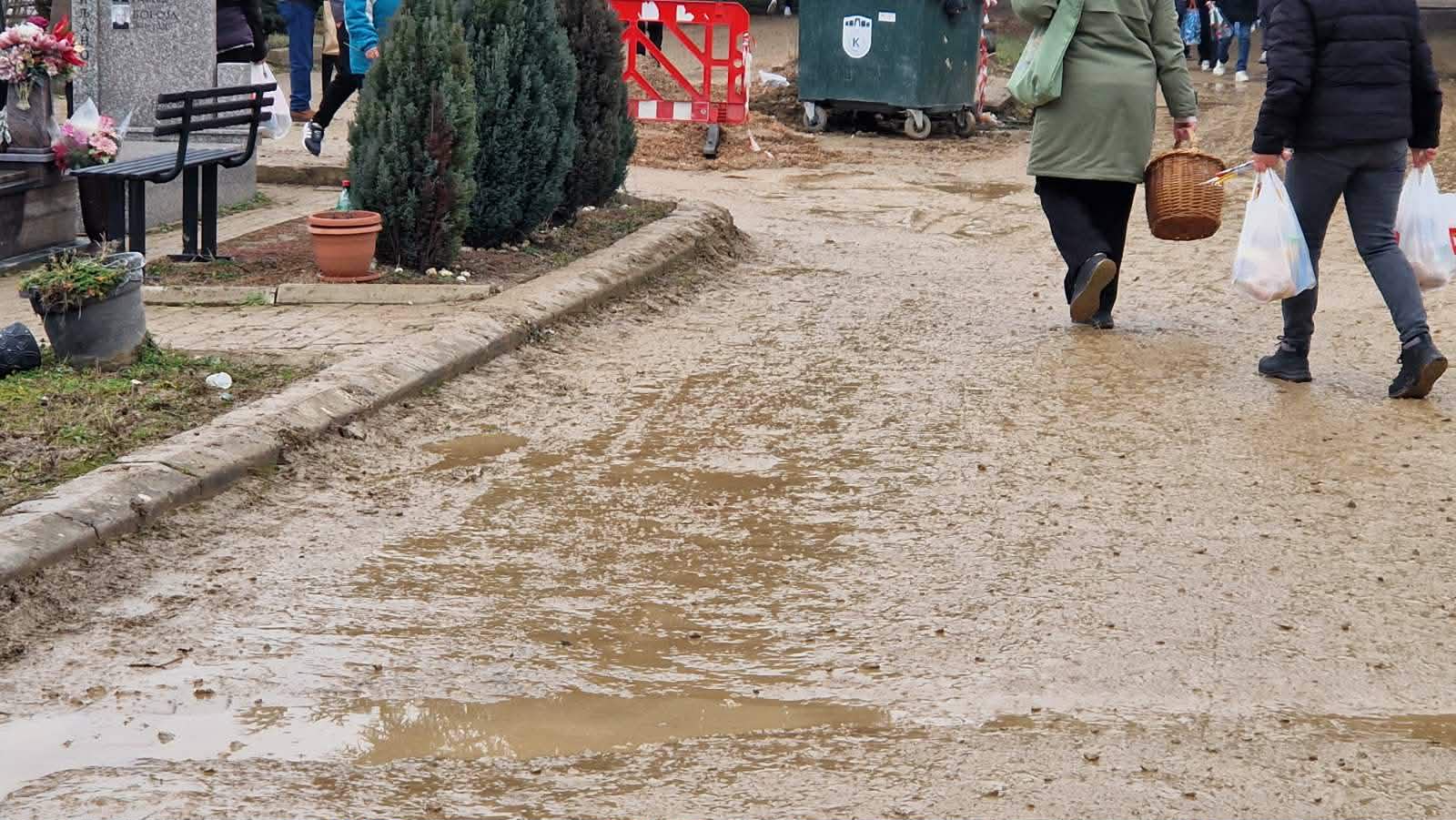 Вирови со вода, кал, ризик да се помине, а и можност да се падне. Ваква е сликата на патеките низ градските гробишта во Охрид при врнежливо време со оглед дека периодов се одвиваат градежни активности.