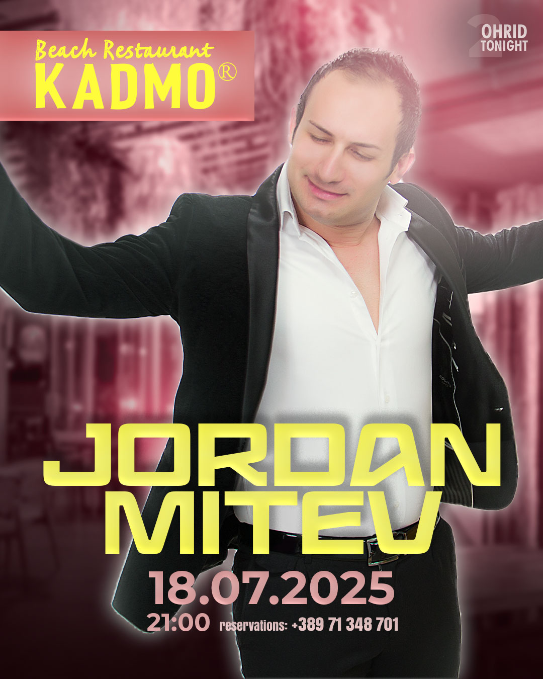На 18 јули во плажа и ресторан „Кадмо“ гостува популарниот македонски фолк изведувач Јордан Митев. Овој настан почнува во 21 часот.