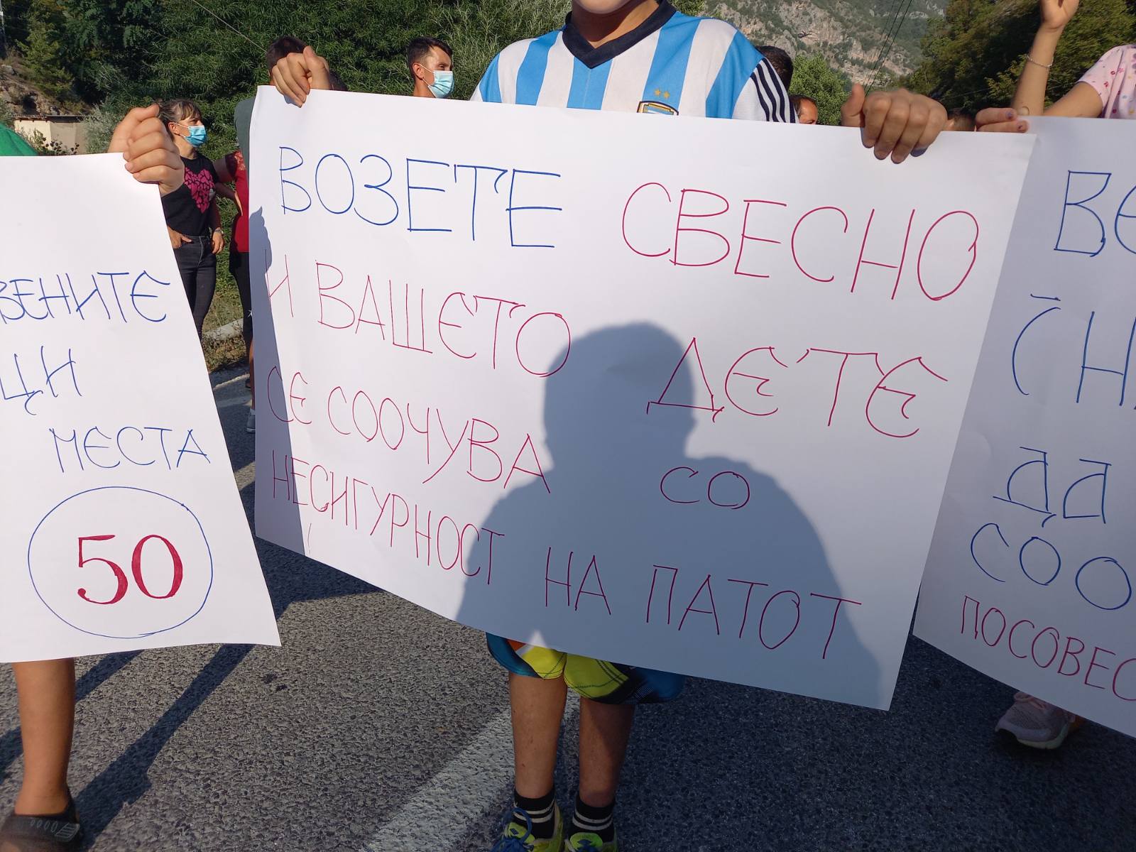 „Возете свесно и вашето дете се соочува со несигурност на патот“, „Ве молиме почитувајте ги поставените сообраќајни знаци кај населените места“, „Надлежните да го контролираат сообраќајот“ , се дел од пораките кои беа пренесени од денешниот протест од страна на локалното население од с. Луково